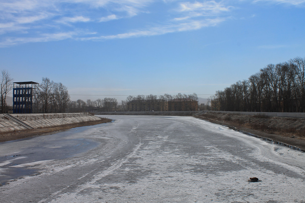 Вид на скромную читинскую набережную с моста по Комсомольской.
